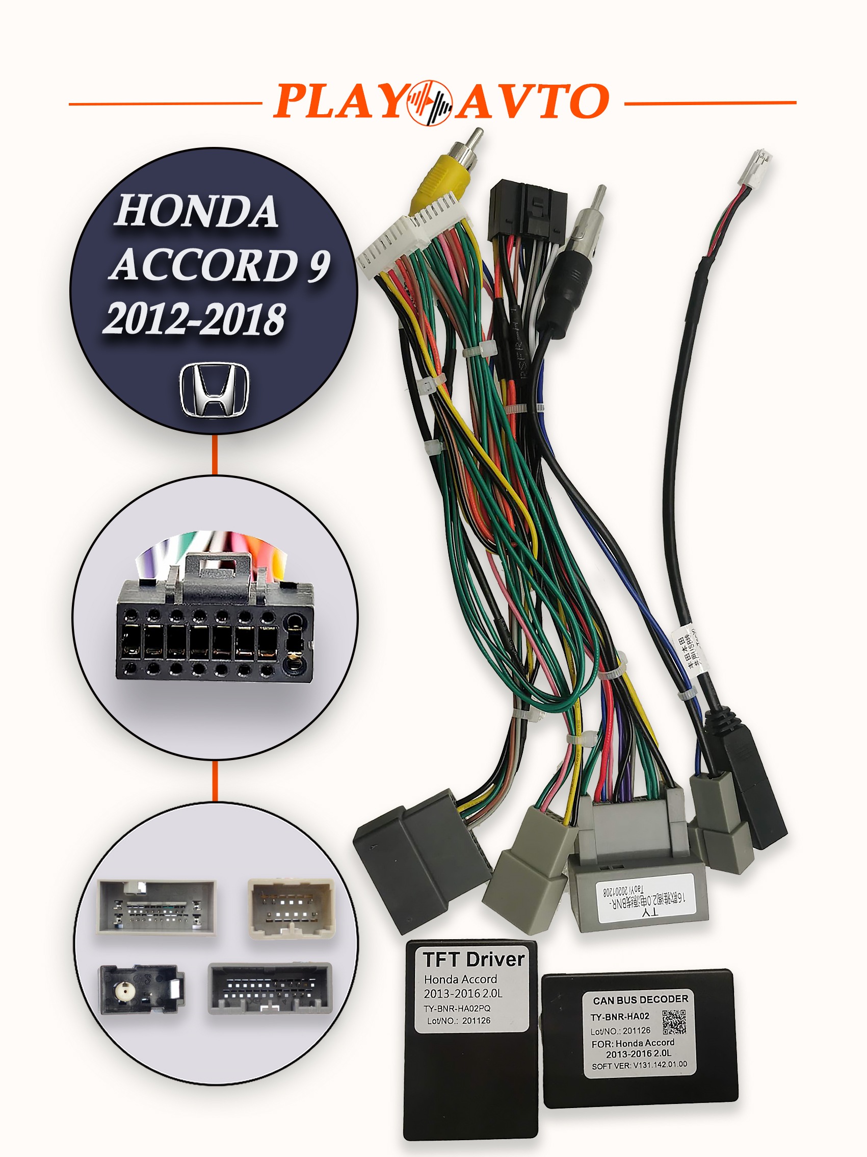 —Комплект проводов для Honda Accord 9 2012-2018 2,0 л с TFT драйвером Letrun 3936